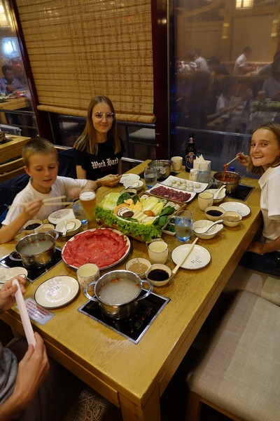 We then grab a taxi to go to The Bull restaurant, on Seoul Street, a local favourite. It is a hot-pot place where you order an array of raw vegetables, sauces and thinly sliced meats, which are brought to your table on platters. We then cook the ingredients in our personal cauldron of boiling broth. Kids enjoy a lot.